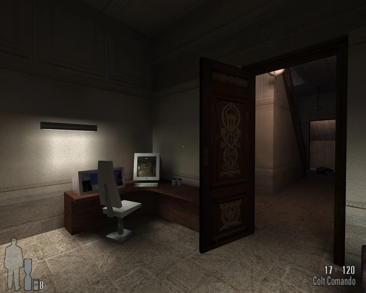 En la recepción de la oficina donde encuentras los planos del edificio Aesir, dispara al cuadro colgado en la pared detrás del escritorio para revelar un interruptor (en el estante cercano encuentras municiones y analgésicos). Púlsalo para que el gran sillón negro se levante y revele unos escalones a un cuarto secreto. Dentro, al prender el televisor, verás la serie llamada "The Void", una parodia a StarTrek... además encontrarás un "pequeño" secreto sucio.