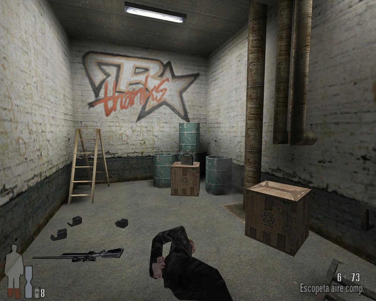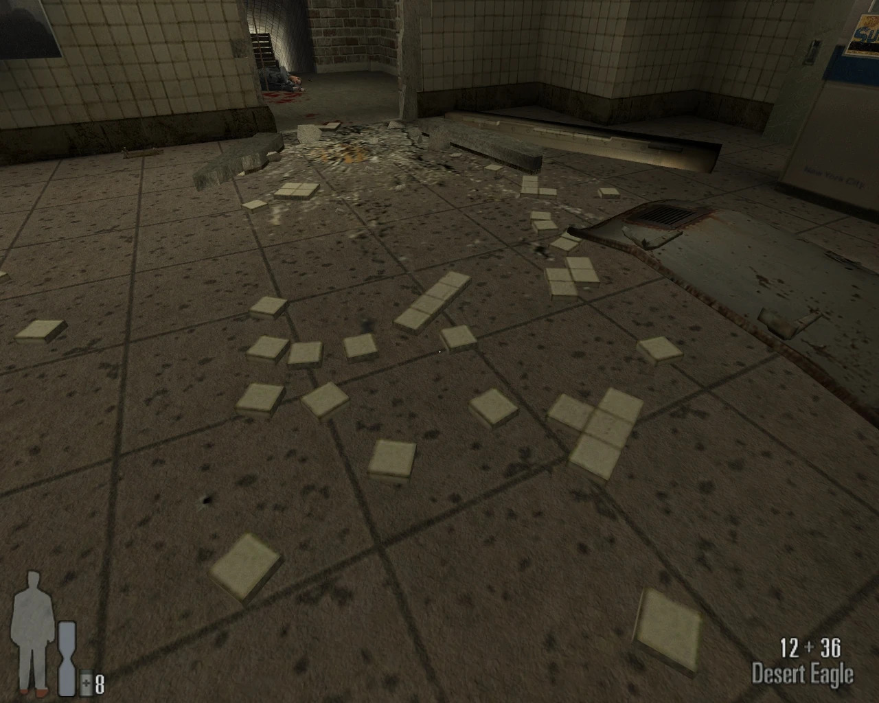 Luego de bajar los escalones en busca del código que abra la puerta cerrada del Cuarto de Control del Metro, un par de mafiosos corren a refugiarse en los vestuarios de la derecha. Luego de eliminarlos, justo debajo de los casilleros se hallan tres cilindros de gas comprimido. Dispárales para que la explosión resultante abra la puerta del Cuarto de Mantenimiento que se halla en el largo pasillo enfrente. Dentro encontrarás municiones para Desert Eagle.