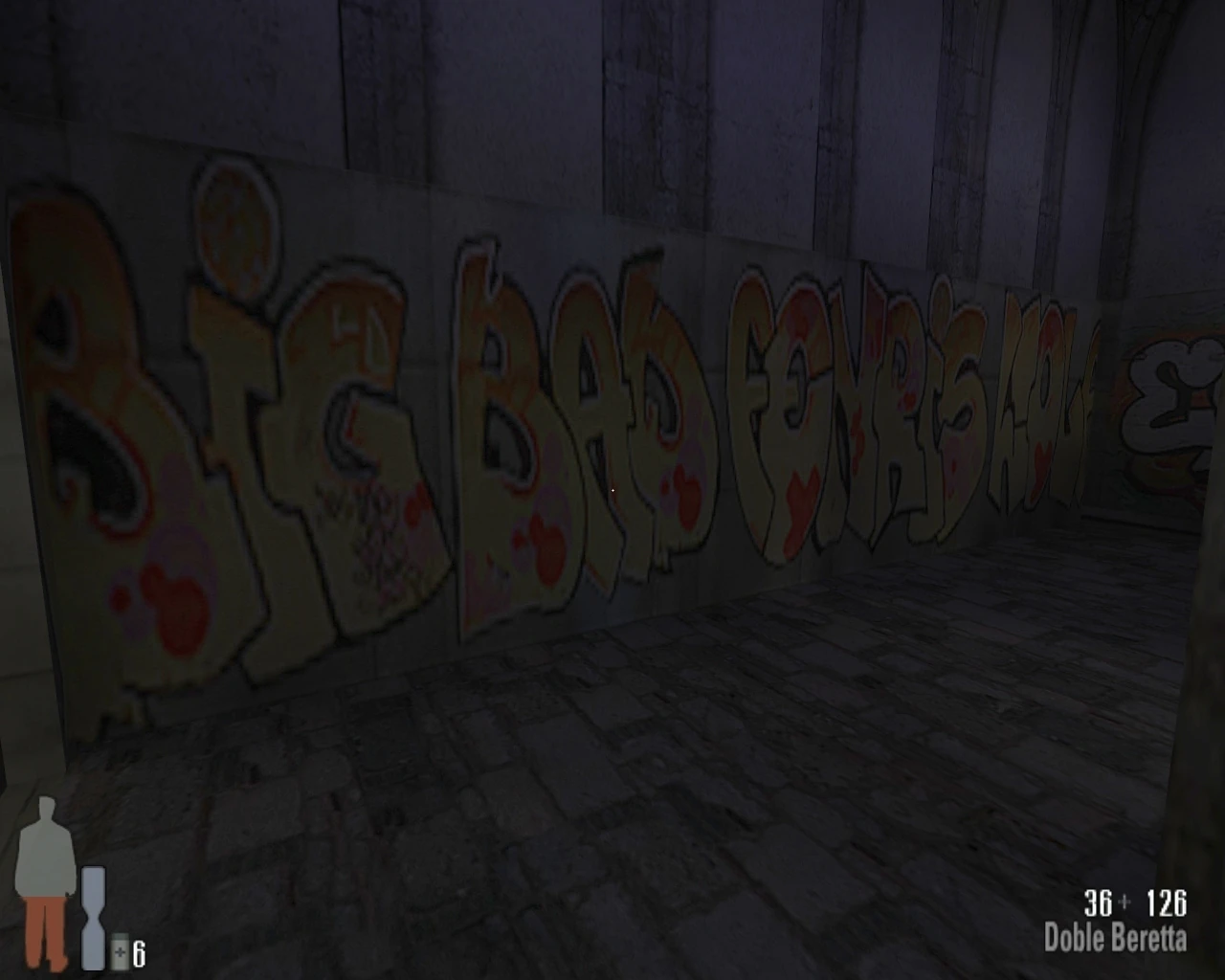 Al final del pasillo donde se encuentra la habitación de Rico Muerte, frente al baño, verás una puerta de madera resquebrajada. Destrúyela, sal por la ventana, avanza por la cornisa hacia la derecha (siguiendo el rastro de sangre) y rompe la puerta similar a la primera para ingresar a una habitación secreta. Además de encontrar cócteles Molotov, municiones y analgésicos, verás un cadáver atravesado por una estaca de madera, y junto al cuerpo, en el suelo, escrito con ¿sangre? la palabra "BUFI". Clara referencia a "Buffy la Cazavampiros".