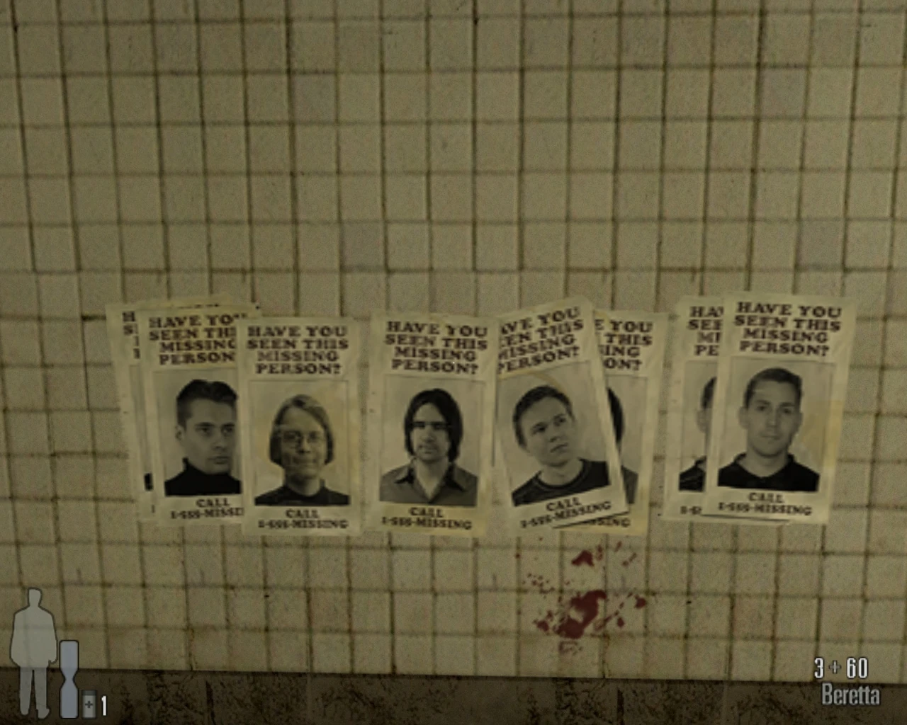 Pegados en las paredes del metro, se aprecian varios carteles de personas desaparecidas que son en realidad algunos miembros de Remedy.