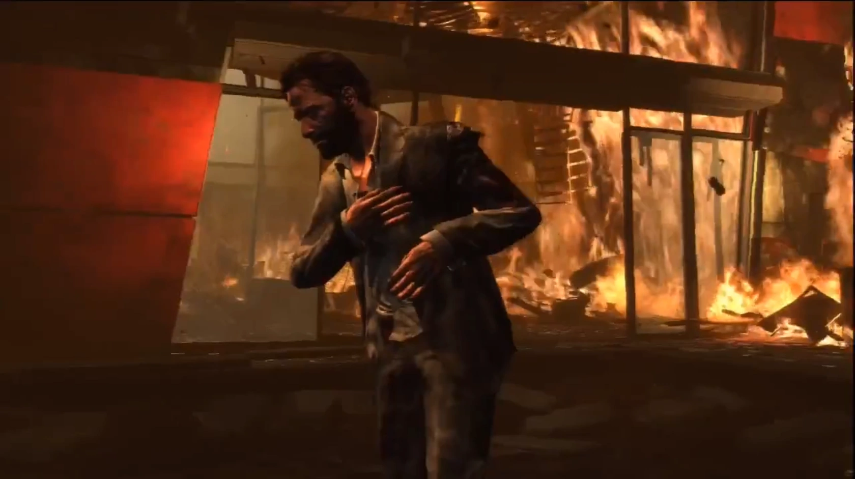 Rodrigo dismisses Becker, who responds by shaking his hand and leaving, and Rodrigo moves over to where Max is still standing, walks past him, and the two talk about how they had "so many plans", and Max responding to Rodrigo, "didn't we all". Da Silva interrupts by making an attempt (via Rodrigo's secretary) to meet with Rodrigo privately, possibly to warn him that the UFE might be involved in the conspiracy regarding Fabiana's kidnapping, only to then be impatiently disregarded by Rodrigo as just "another bent cop". Shortly proceeding this, a distant sounding alarm triggers and Rodrigo announces that a group, of which are later determined to be the Cracha Preto, are entering the building through the reception doors (of which is visibly confirmed via the CCTV monitors active in Rodrigo's office). Max has no choice but to face the heavily equipped militia head-on, leaving Rodrigo in his office so he can be ready to activate it's lockdown sequence. Max is assisted by the IT Guy to get the systems back online in the headquarters, which the inactivation of has prevented Rodrigo securing his position. Max orders the secretary and the IT Guy to get behind cover, then retrieves a firearm (Micro 9mm) from his jacket pocket and charges into the next room, after this point gameplay quickly ensues; inside the office are a unit of the hostile paramilitary who begin firing at Max once he completely enters the room; after which a few reinforcements from the next room arrive to assist them in eliminating the lone threat. Max, despite incredible disadvantage, successfully eliminates all of the armed units inside the room, and those that he and the IT guy encounter following this. After the building is successfully locked down, Max returns to the office, where he finds Rodrigo dead on his computer desk, having been executed with a shot to the rear skull, and in this case fatally, paralleling Max's own unconscious position seen at the beginning of the chapter. Max then recovers a bottle from one of Rodrigo's desk drawers and in the process of attempting to unscrew the bottle cap, accidentally breaks the framed photo of Fabiana seen earlier while Rodrigo was alive (of which Max had presumably picked up to accompany his drinking). Max then begins to collect the broken shards of the frame but notices a remote explosive wired underneath Rodrigo's desk, and in panicked realisation, then attempts to descend from the offices balcony, the same Rodrigo had been shouting to him from earlier; however, before Max can fully evade the wired explosives blast radius, it detonates, violently throwing Max from the railing to the ground below, knocking him out. Through the detonation of other (speculated) explosives, the building starts to collapse from severe structural damage and an inferno.
