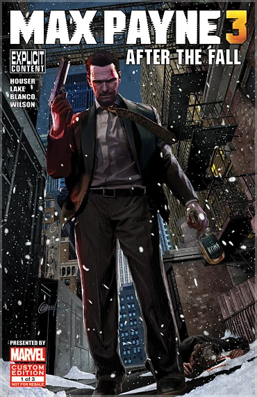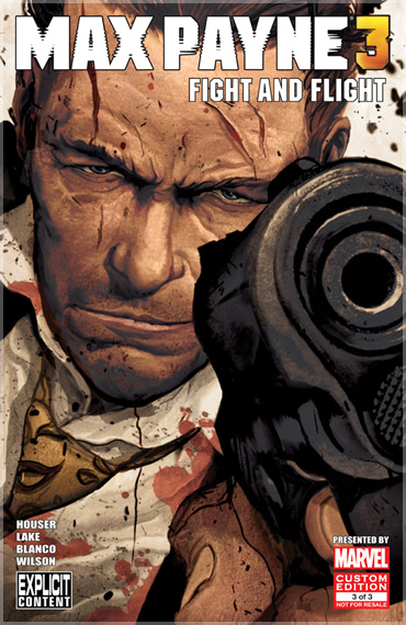 Max Payne 3 comics is an 3-part comic series, written by Dan Houser and Sam Lake and drawn by the artists of Marvel Custom Solutions. Acting as a tie-in to the Max Payne 3 game, the comics explore Max Payne's life story's events during the first and second games and bridge them to those of the third game. Featured are also unseen episodes of Max Payne's past, taking place in the timeline even before the events depicted in the first game.[2]