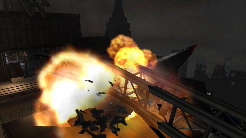 As Max pursues Horne through the penthouse, Horne speaks on the intercom, asserting that Max is doomed not to succeed. At the rooftop, Horne boards the helicopter, but Max shoots the wires supporting a broadcast antenna. The antenna collapses, crushing the helicopter and killing Horne. Then, the helipad plummets to the ground, destroying the remainders of Horne's helicopter. With Horne dead, Max's journey across the city is finally over.